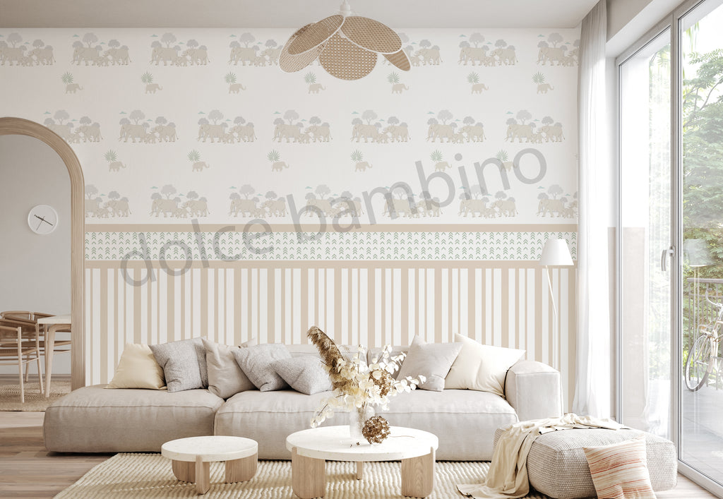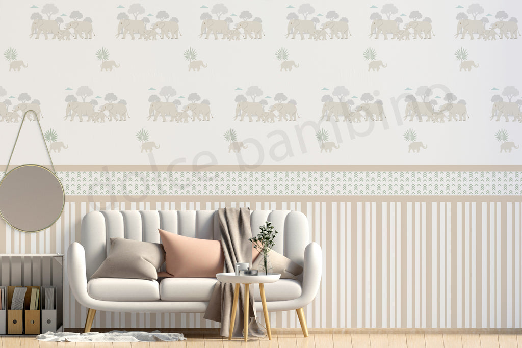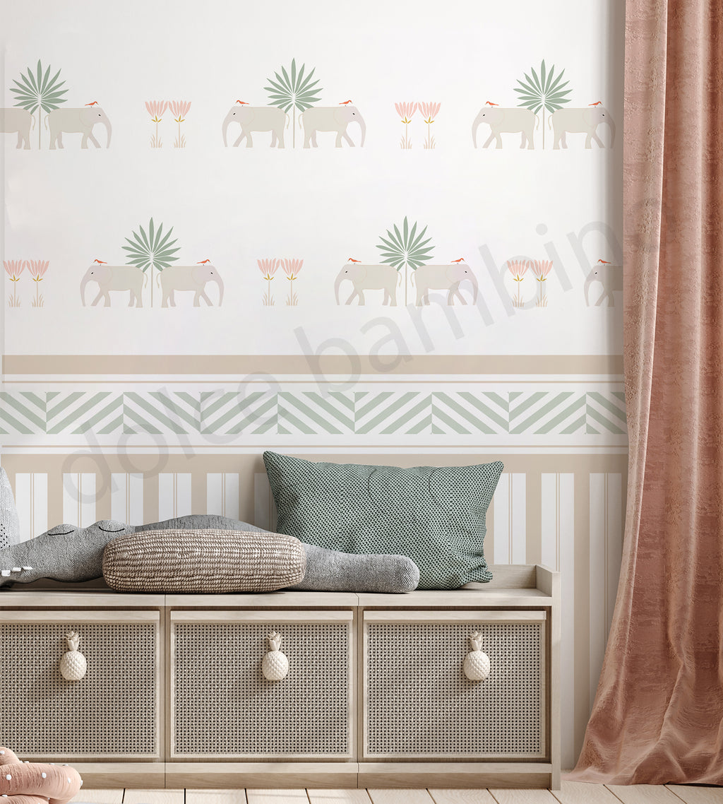 Soft, soulful, and beautifully understated — this hand-illustrated wallpaper gently brings the charm of a peaceful elephant parade into your child’s world. With baby elephants walking side-by-side in gentle rhythm, it celebrates calm companionship and family bonds in the sweetest, most delicate way.