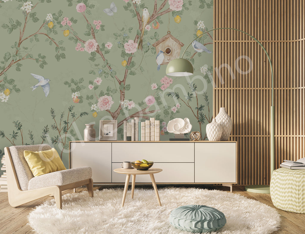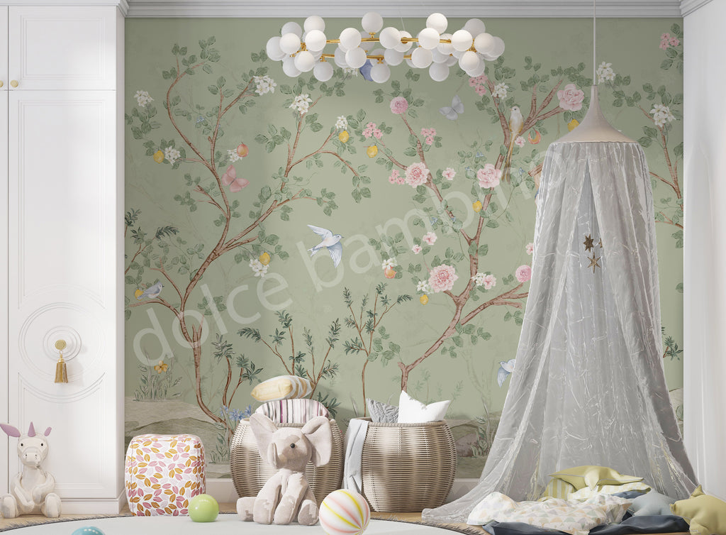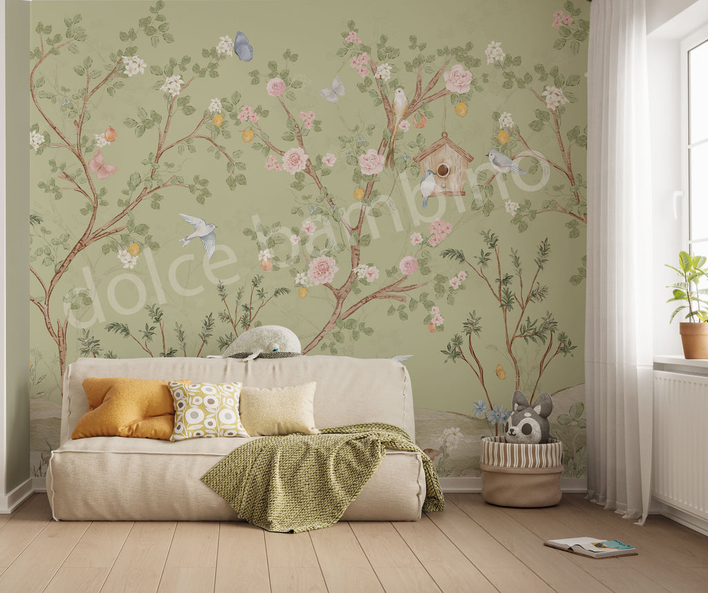 This handpainted masterpiece transforms your walls into a gentle escape where nature's whispers meet timeless elegance. Soft sage tones create a serene backdrop that feels both grounding and uplifting, bringing an effortless sophistication to any space. It's nature's poetry written on your walls, creating spaces that feel both cozy and refined.