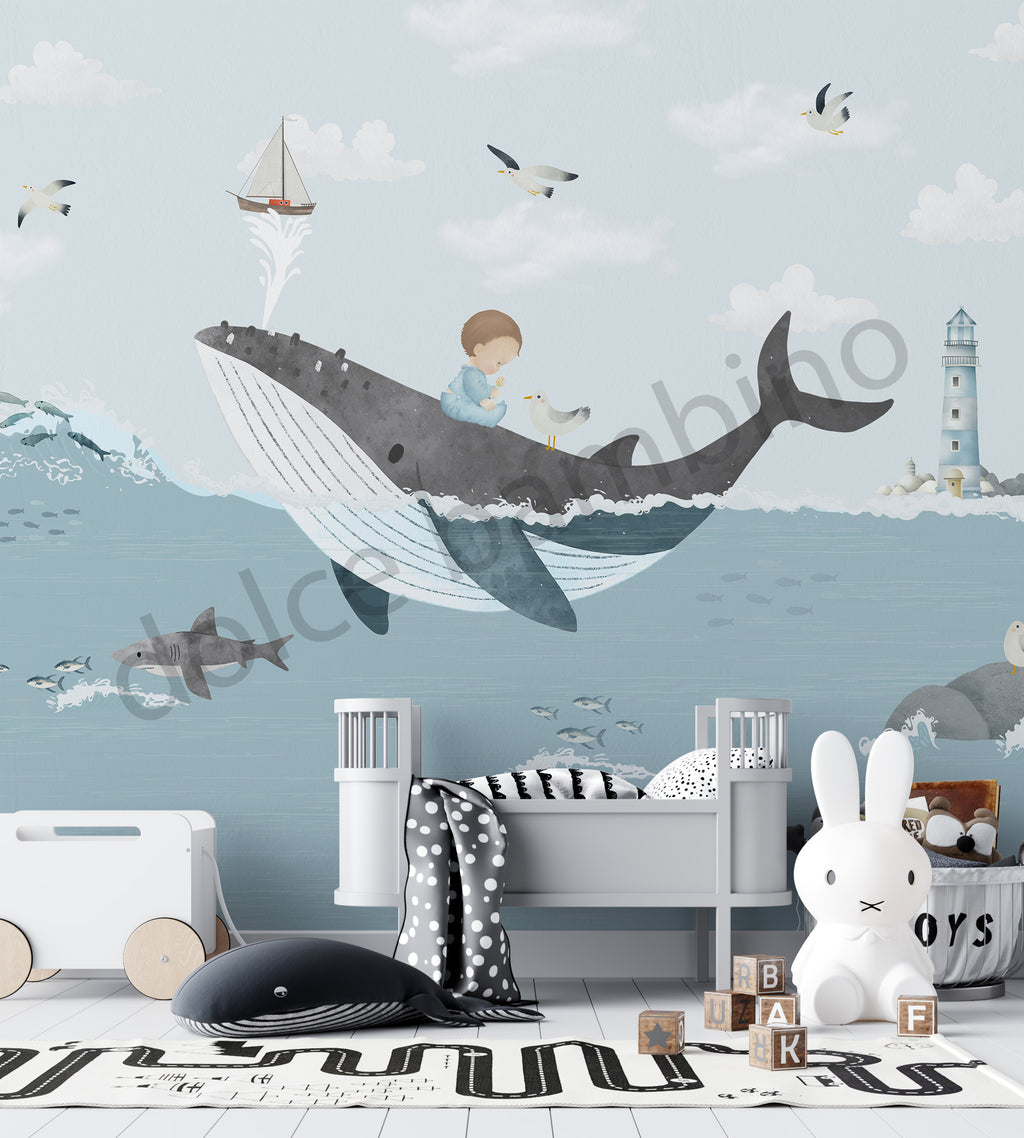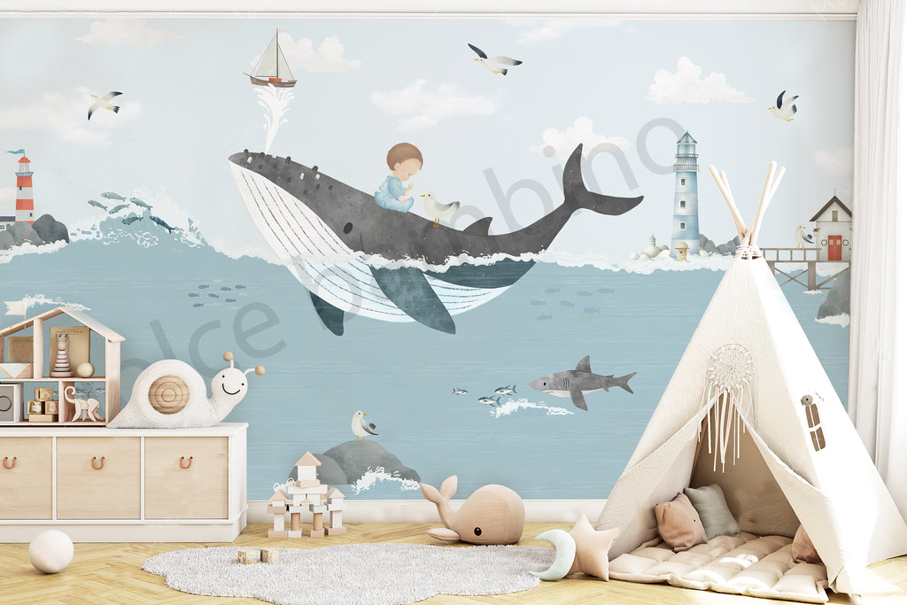 A under the sea themed wallpaper that makes bedrooms feel like a submarine adventure. The calming oceanic design is perfect for boys who dream of underwater exploration while needing a serene space to unwind.
